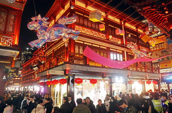 上海豫园新年假期旅游人气火热:马年民俗艺术灯会非遗彩灯首次融合高科技灯光秀