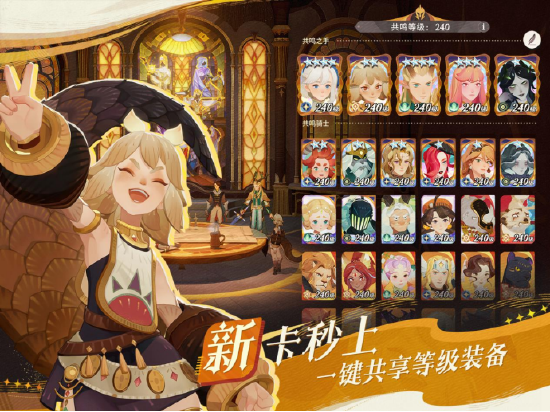 伊索米亚冒险的惬意,来自《剑与远征:启程》贴心地为玩家开启了角色等级和装备等级的共享。