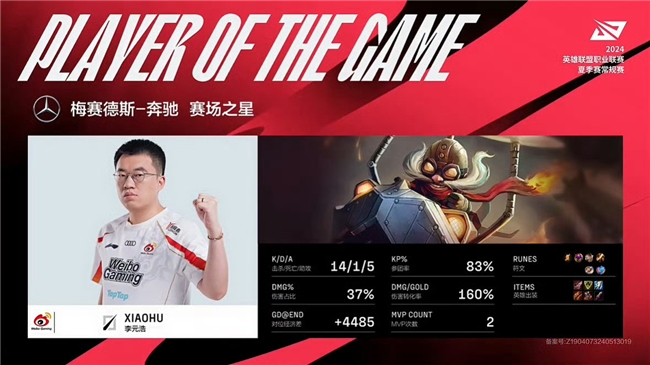 最后,也预祝选手Xiaohu、Crisp、Light、Breathe、Tarzan,能在季后赛再创佳绩,诠释“生而为赢 以勇行己路”的理念,同时也感谢台前幕后的每一位工作人员,以及在比赛现场和屏幕前支持着WBG的所有粉丝!