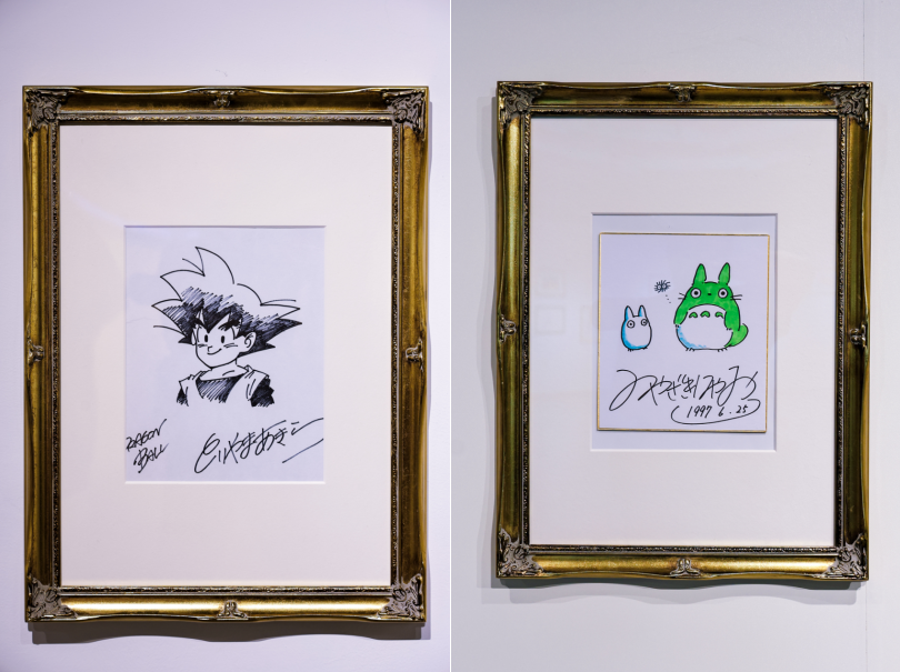 【鸟山明(左)、宫崎骏(右)的亲签手稿,几乎是到场粉丝必拍的】