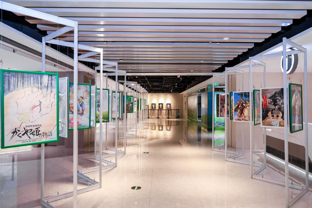 官方巧妙地利用了B3的空间风貌,将复古与现代空间交替展现:走进陈列手稿的房间,扑鼻而来的简约复古气味唤醒了那个年代的动画记忆;回忆的劲头未过,又到了前方一道长长的走廊,你不由地停下脚步,看着两边色彩斑斓的海报,放在现代感设计十足的空间之内,