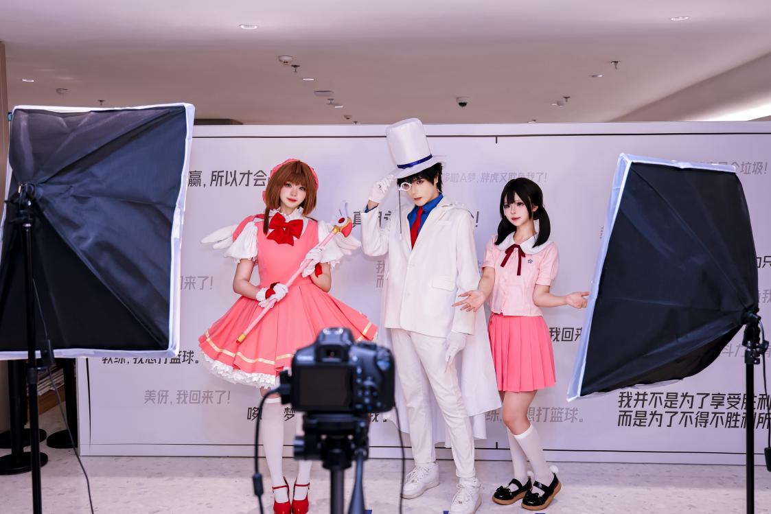 【手翻书制作现场的coser小樱(左)、基德(中)、静香(右)】