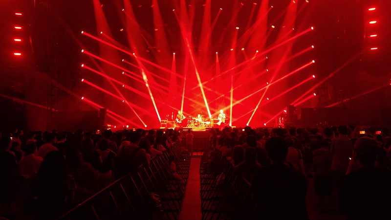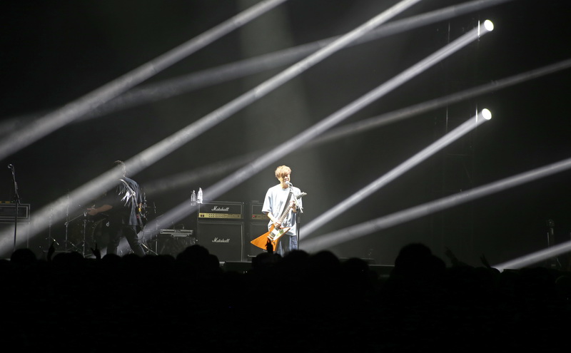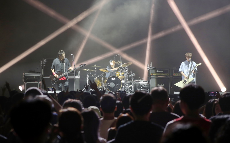 2024年9月28日,上海,原世博会俄罗斯馆14年后化身魔都演艺旅游新地标RED ROCK(红石中心)再度向市民游客开放,动漫电影《灌篮高手》主题曲演唱歌手——日本10-FEET摇滚乐队的演唱会作为新馆揭幕演出震撼上演。TAKUMA(主唱兼吉他手)、NAOKI(贝斯手兼主唱)和KOUICHI(鼓手兼和声)三位艺人中国首秀融合了摇滚、朋克、重金属、雷鬼、嘻哈和吉他流行等多元化原创音乐风格。酷炫的舞台灯光、爆燃激情的音乐混合着欢呼与掌声,现场不少日本歌迷与中国粉丝一起跳起应援战舞,场面欢乐和谐,以一场热血超燃动感音乐狂欢派对将红石中心气氛推向高潮。(漫游网@时代战士行云 摄影报道)