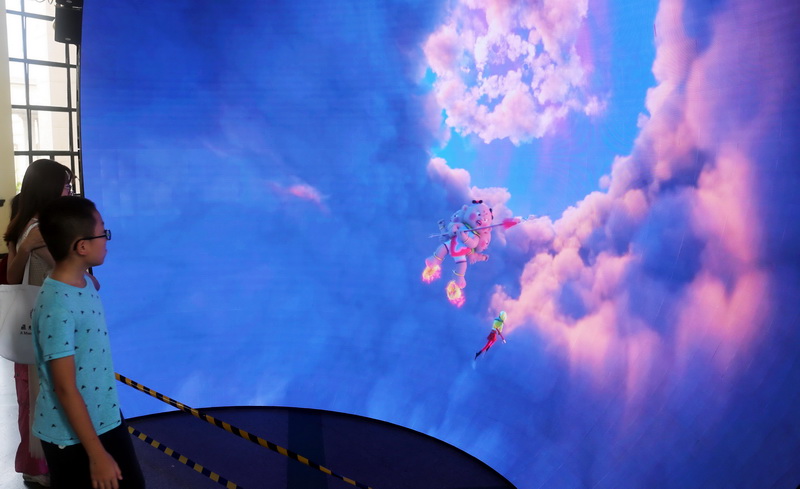 国产3A游戏《黑神话:悟空》在全球掀起“西游热”,而中国昔日经典动画IP《大闹天宫》也在制作完成60周年之际迎来新生,上海美术电影制片厂版权运营方上影元在上海国际光影节上推出了美影厂版孙悟空的“3D全景视角动画片”,观众仿佛与齐天大圣一同闹龙宫、闯天庭,大战天兵天将,二郎神、哪吒等国漫人气角色也都亮相。怀旧的配音、角色造型融合新潮视觉与新兴技术快车,诞生了充满时尚活力的国风、国潮作品。上影元以艺术共创为源头活水、以最新技术为助力、以丰富的营销、传播玩法为途径,为《大闹天宫》赋予了具时代特色的文化及商业价值,拓展了IP开发的想象边界,科技进步为讲好中国动漫故事、传承中国传统民族文化打开了创新思路。(漫游网@时代战士行云 摄影报道)