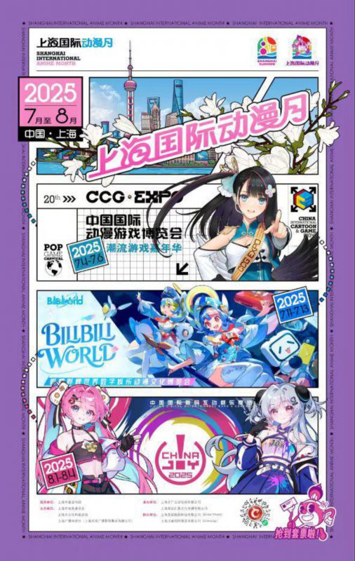 CCG EXPO(中国国际动漫游戏博览会)、Bilibili World(哔哩哔哩线下嘉年华)与ChinaJoy(中国国际数码互动娱乐展览会)三大动漫展会联动,将以“漫动City,High翻一夏”为主题,于7月4日至8月10日举办首届上海国际动漫月。
