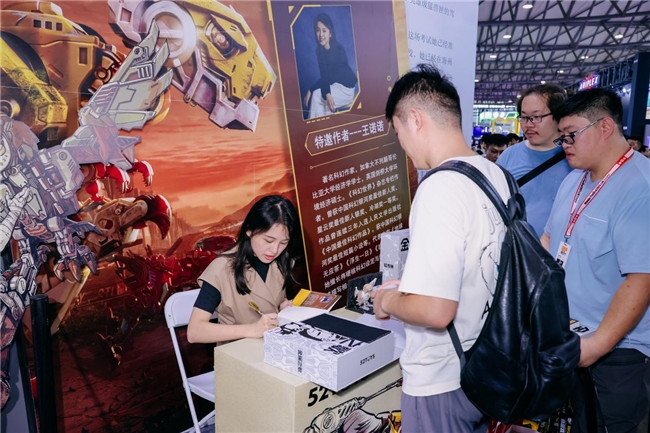 作为国创变形机甲代表性IP,猛兽匣(BEASTBOX)系列成为本次52TOYS展区的最大亮点,产品和内容成果颇丰。备受玩家期待的猛兽匣首部官方小说《猛兽匣:金属之歌》珍藏版在展会现场超前发售,小说作者、曾荣获中国科幻银河奖最佳新人奖的科幻作家王诺诺亲临现场签售。小说以其精美的装帧与引人入胜的设定,迅速成为资深玩家与科幻爱好者争相收藏的对象,现场等候签售及购买的粉丝排起长龙。