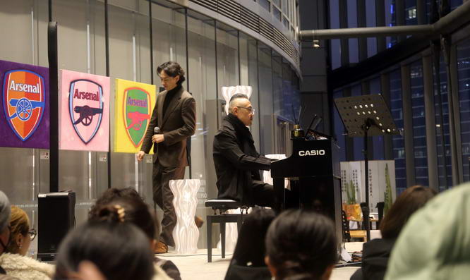 2026年1月30日,上海,位于中国第一高楼上海中心大厦的“全球最高实体书店”朵云书院旗舰店上演浪漫爵士音乐会。舞台上造型独特的艺术装置如同凝固的星光,柔和的暖光与窗外的冷冽霓虹相映成趣,将现场晕染成一座梦幻流动的光影剧场。