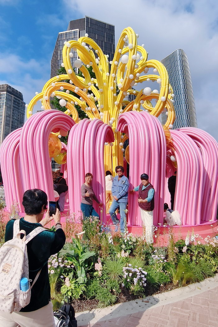 为期一个月的上海国际花展今年首次升级为“国际花卉节”,在黄浦新天地太平湖城市公园成主会场,近30组全球花匠打造的鲜花园林艺术景观汇聚成“世界花园”,双休假期吸引众多市民游客CITYWALK打卡拍照。包括应景马年的怀旧童年水上旋转木马、流浪猫童话城堡、白玉兰皇冠、沉睡在绣球花中的树懒、时间玫瑰喷气花瓣装置、浪漫万花筒等园艺景点空间,从静态赏花观景到沉浸式互动体验,从现代花艺到传统花神文化,充满想象力的作品不仅视觉享受,也于生机盎然中传递治愈疗愈身心、人类与自然环境和谐包容、共享共生的美好生态,花海融入都市商圈也推动了文商旅体展深度融合,带动“花经济”文旅消费新场景。